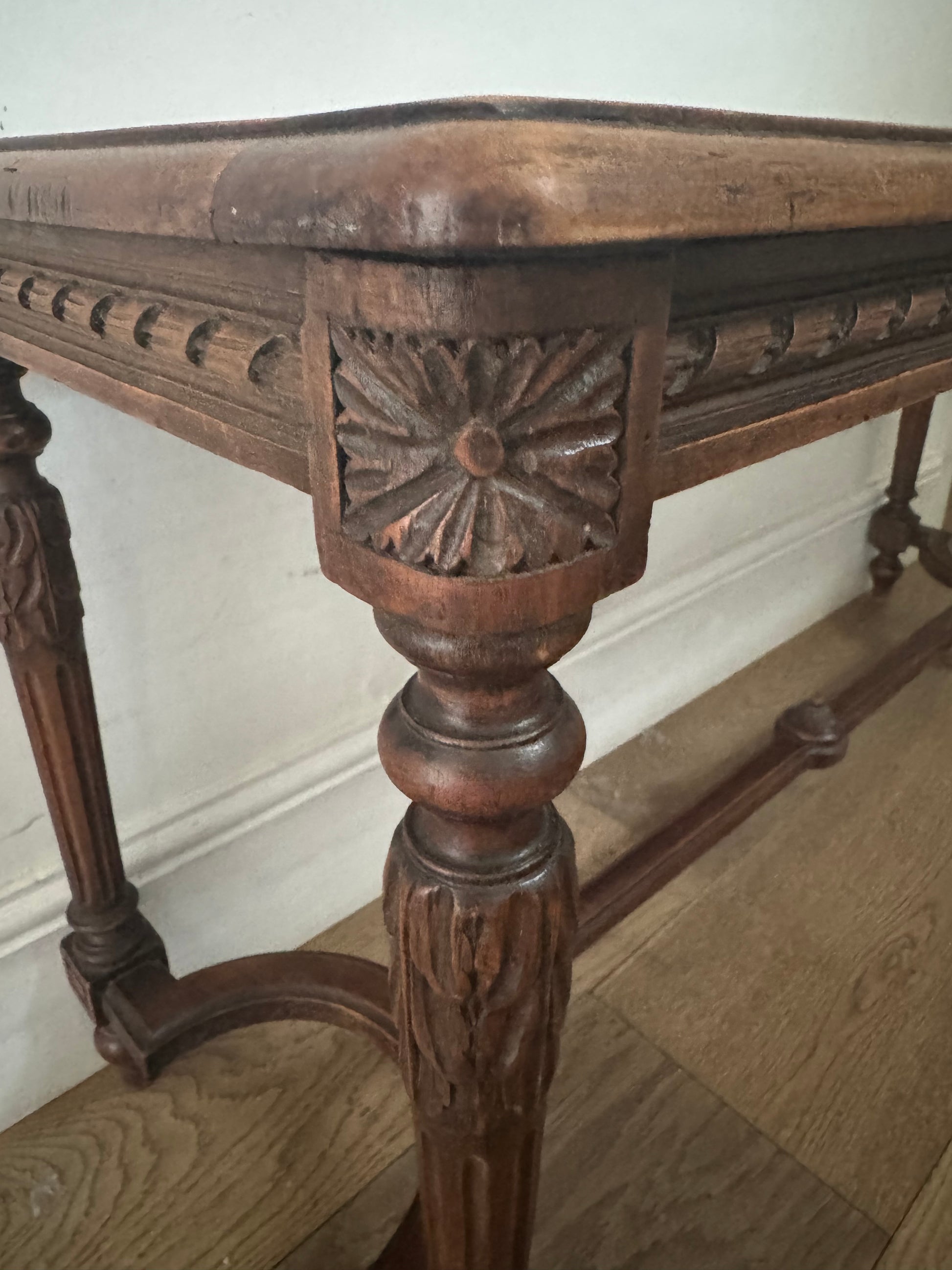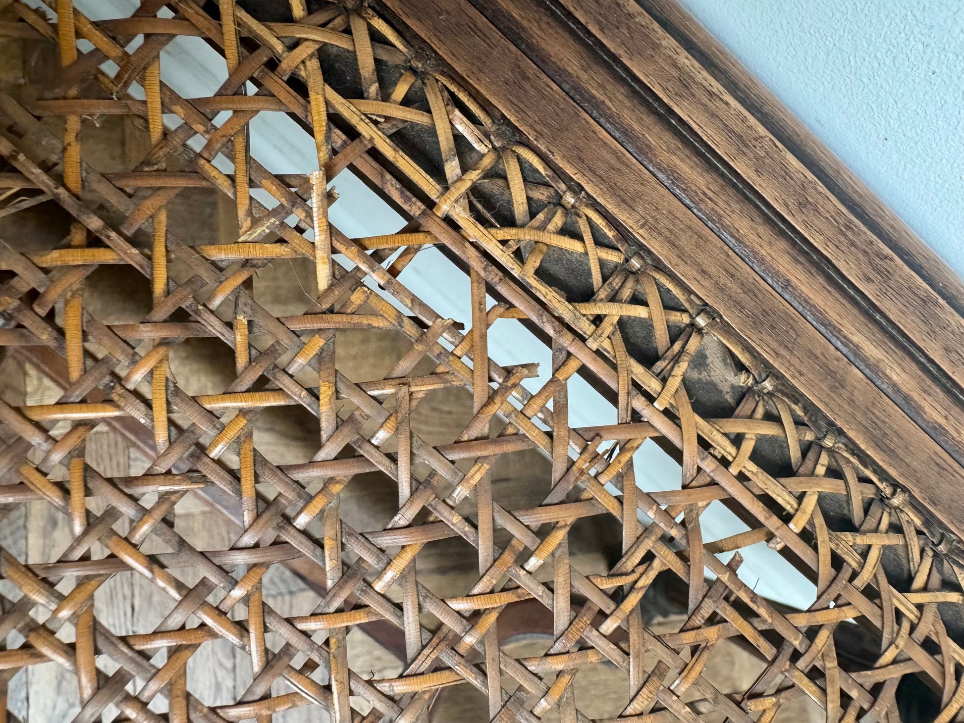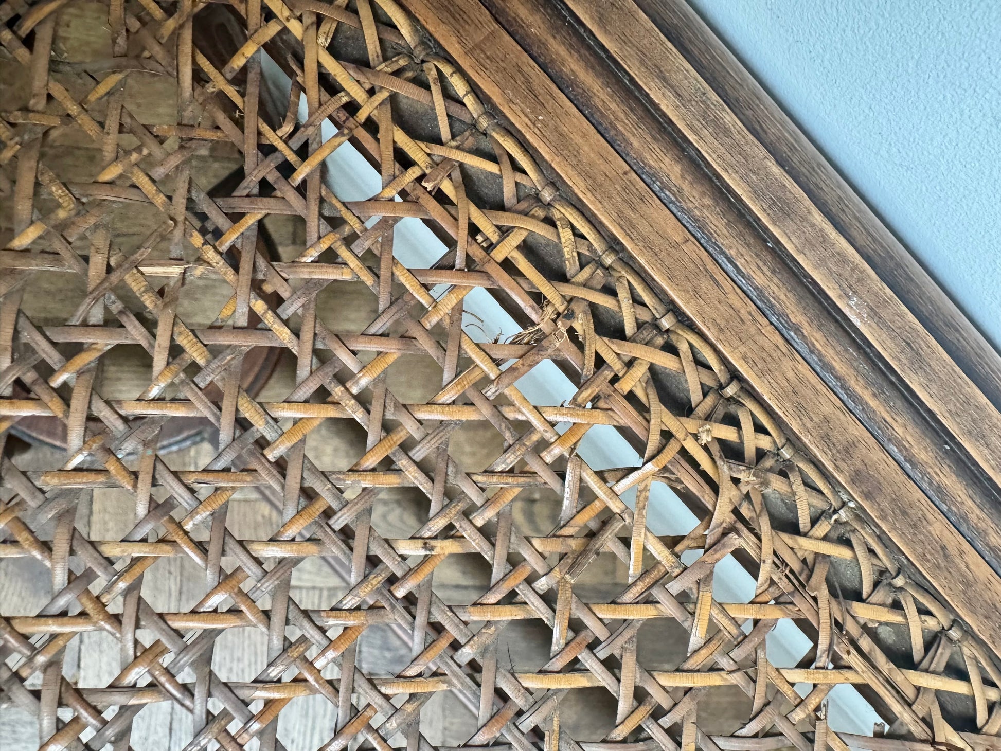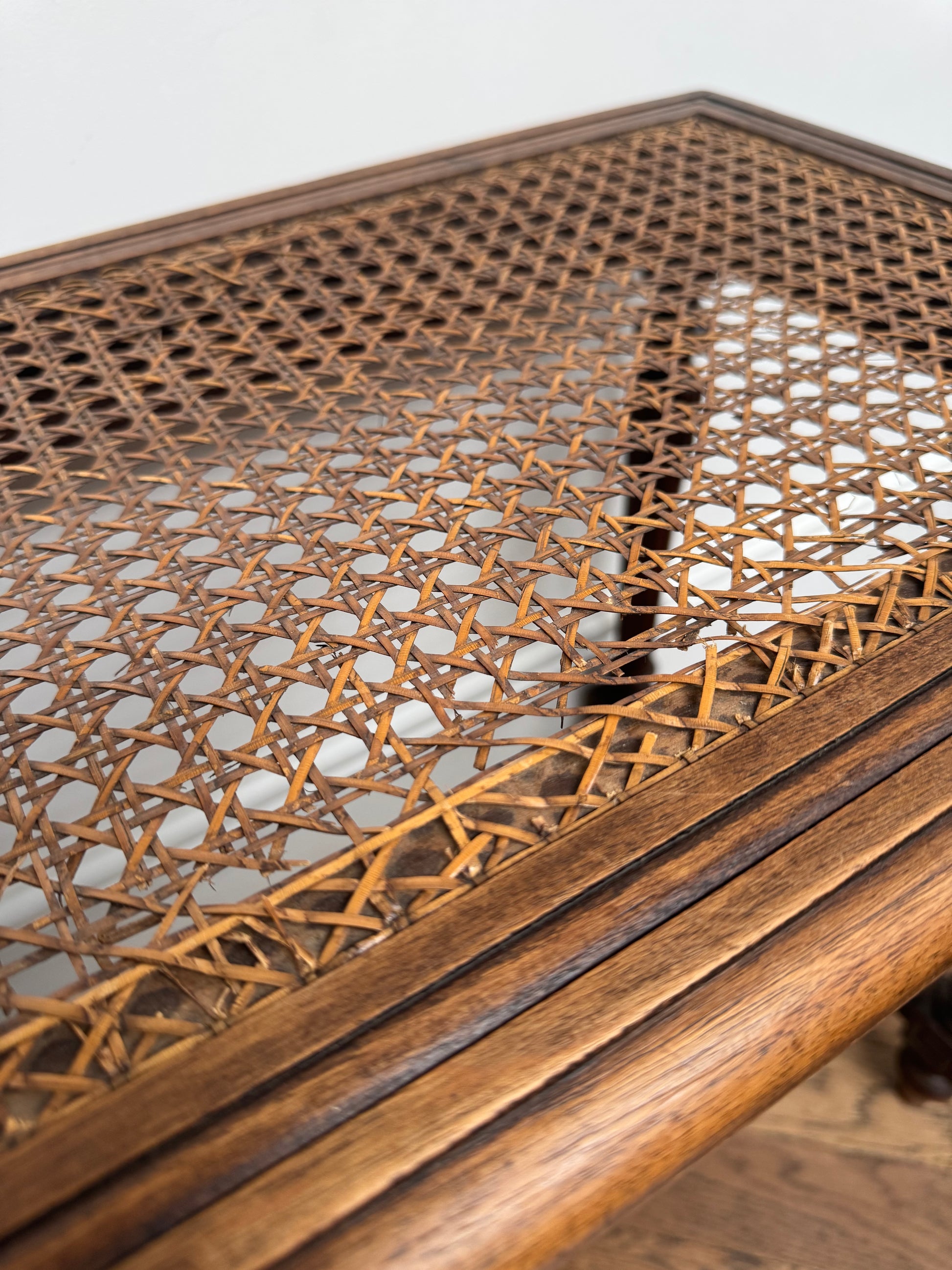 Beautiful French Caned Bench. A classic piece in good condition. The cane is worn & frayed on a couple of the edges and there's a historic repair to the bottom stretcher bar. The fraying and repair are barely noticeable but please study pictures carefully.