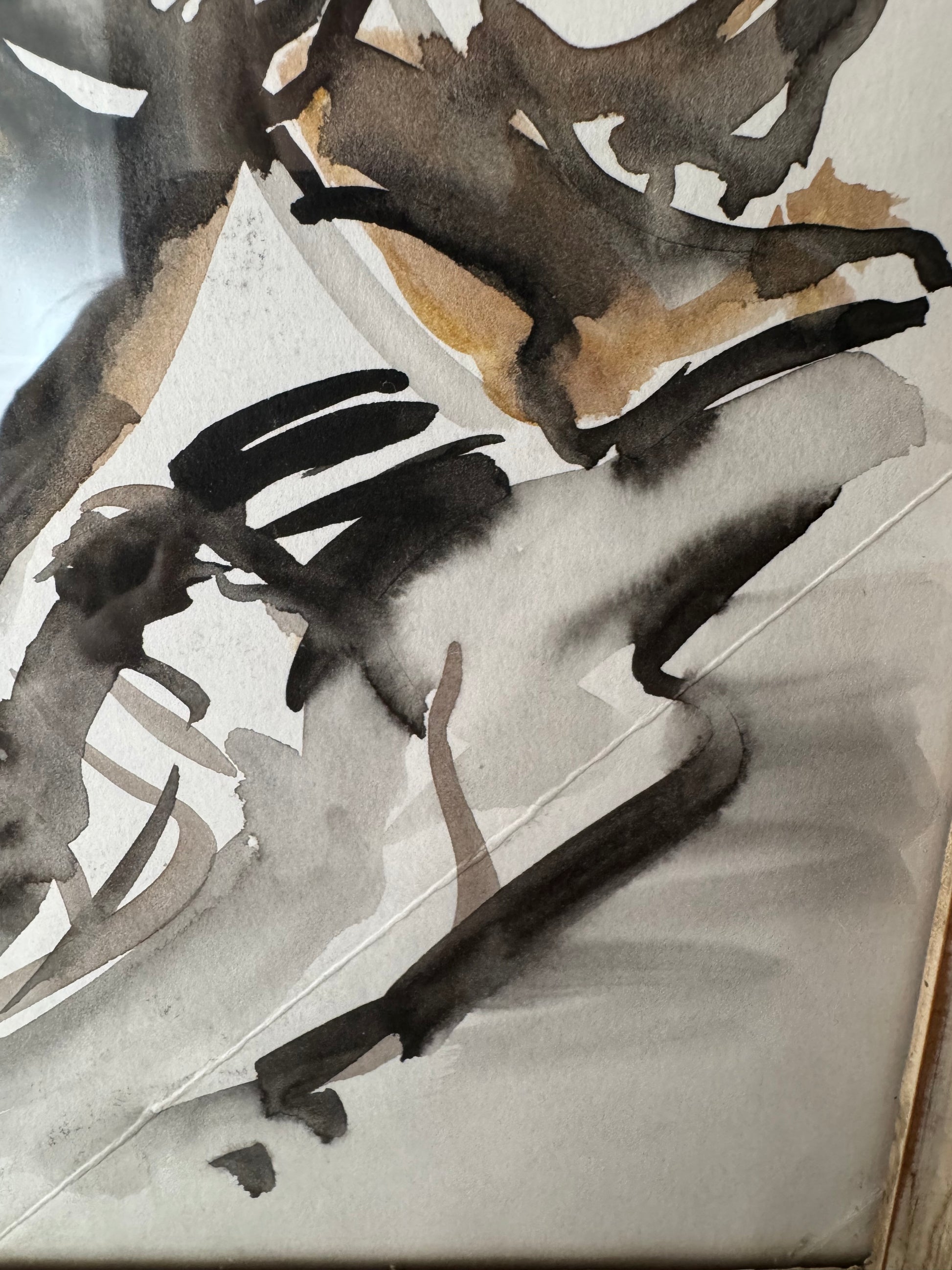 I absolutely love this beautiful watercolour on paper by Stanley Joyce framed in a stunning scalloped edge vintage French frame. Stunning moody muted colours and bold expressive mark making.