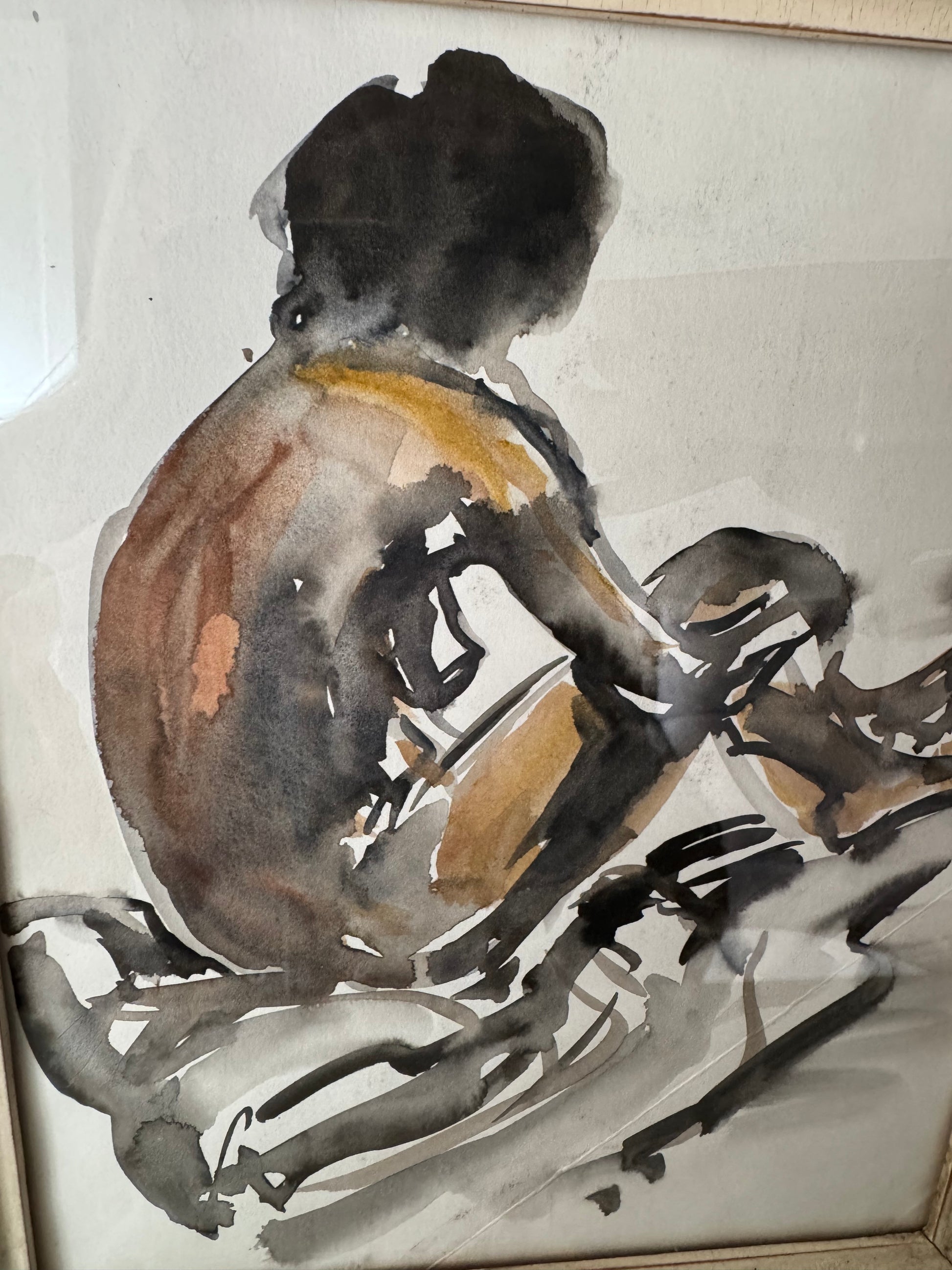 Beautiful Watercolour Nude Figure Study In Stunning Vintage French Frame