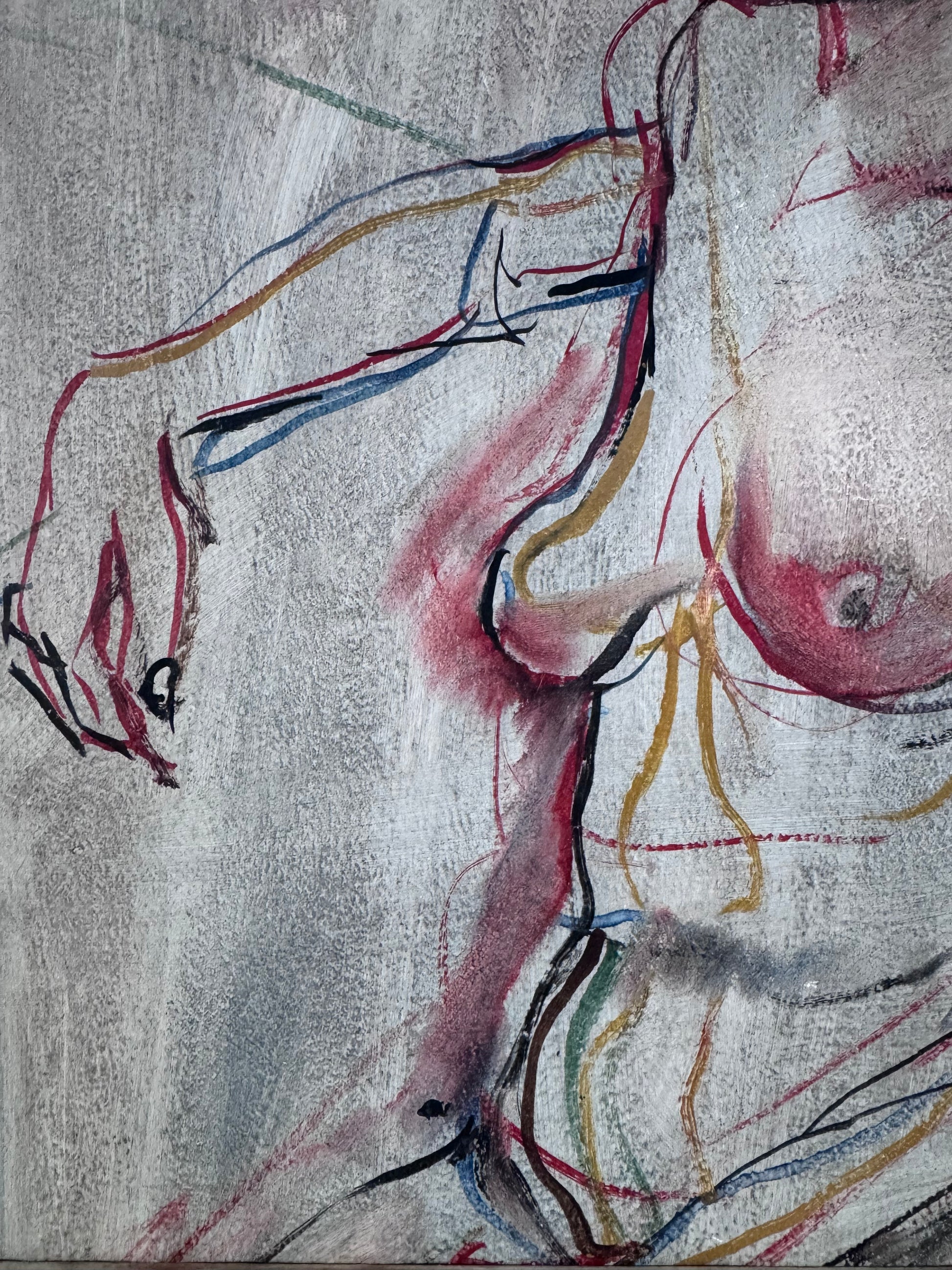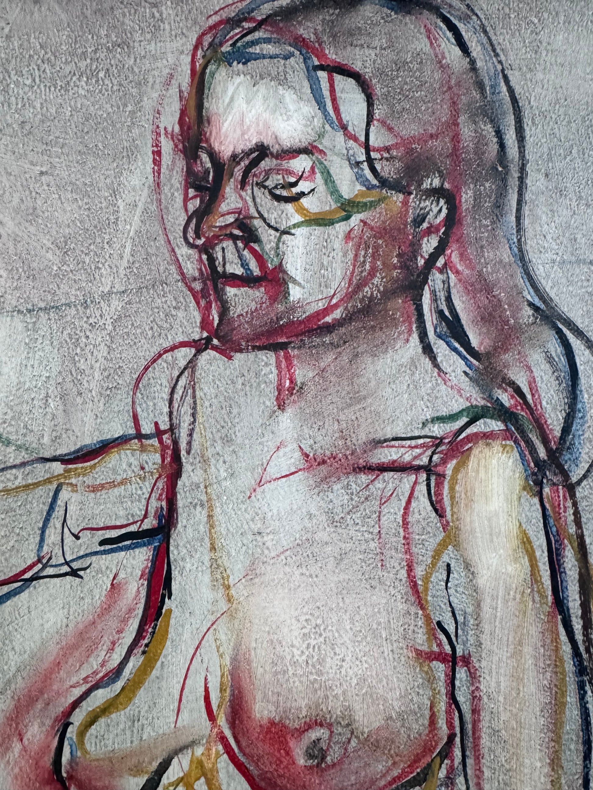 This will definitely be a marmite painting! I love it (obviously). I love the use of the bold colours and the lines creating a striking piece.