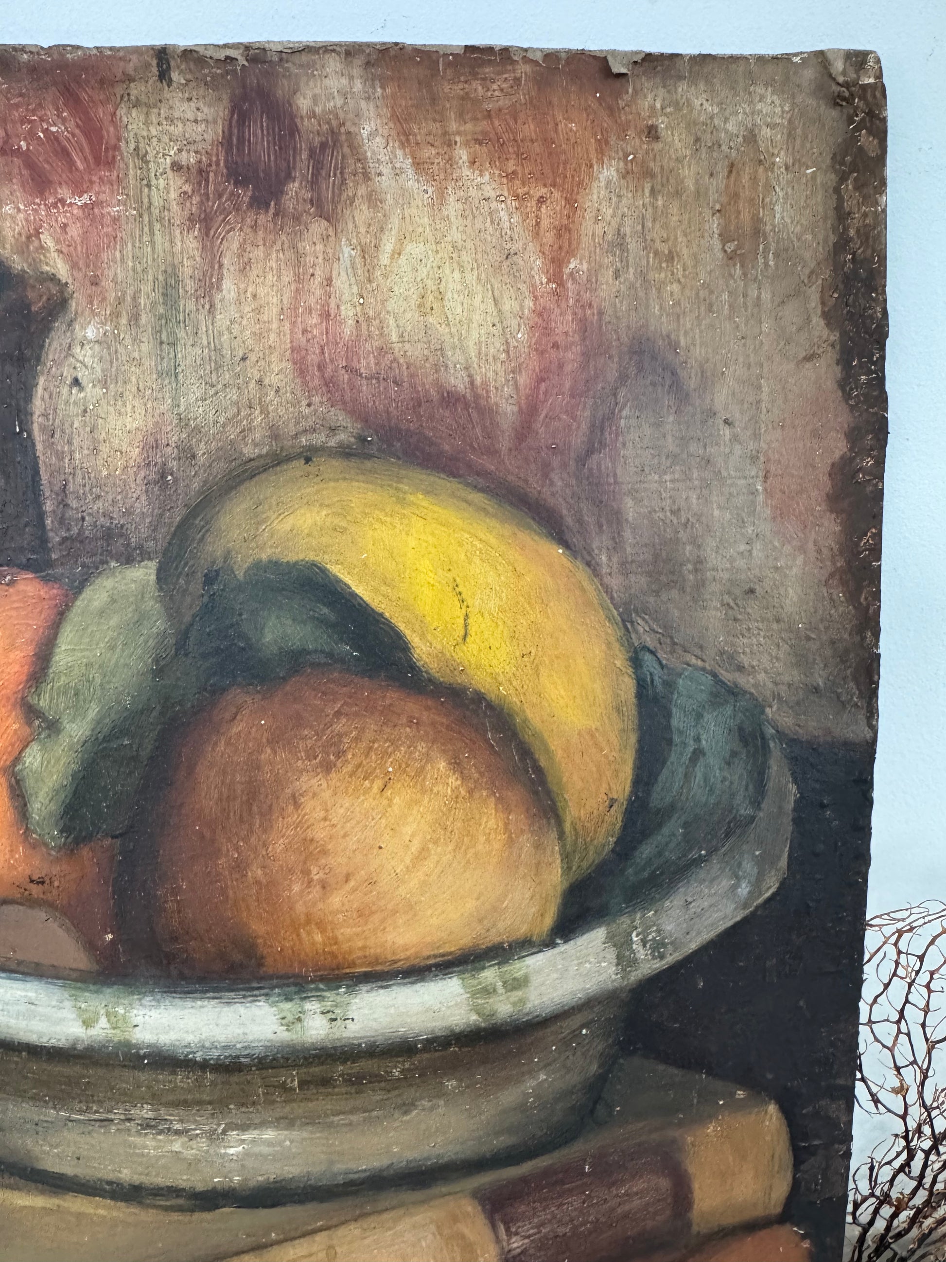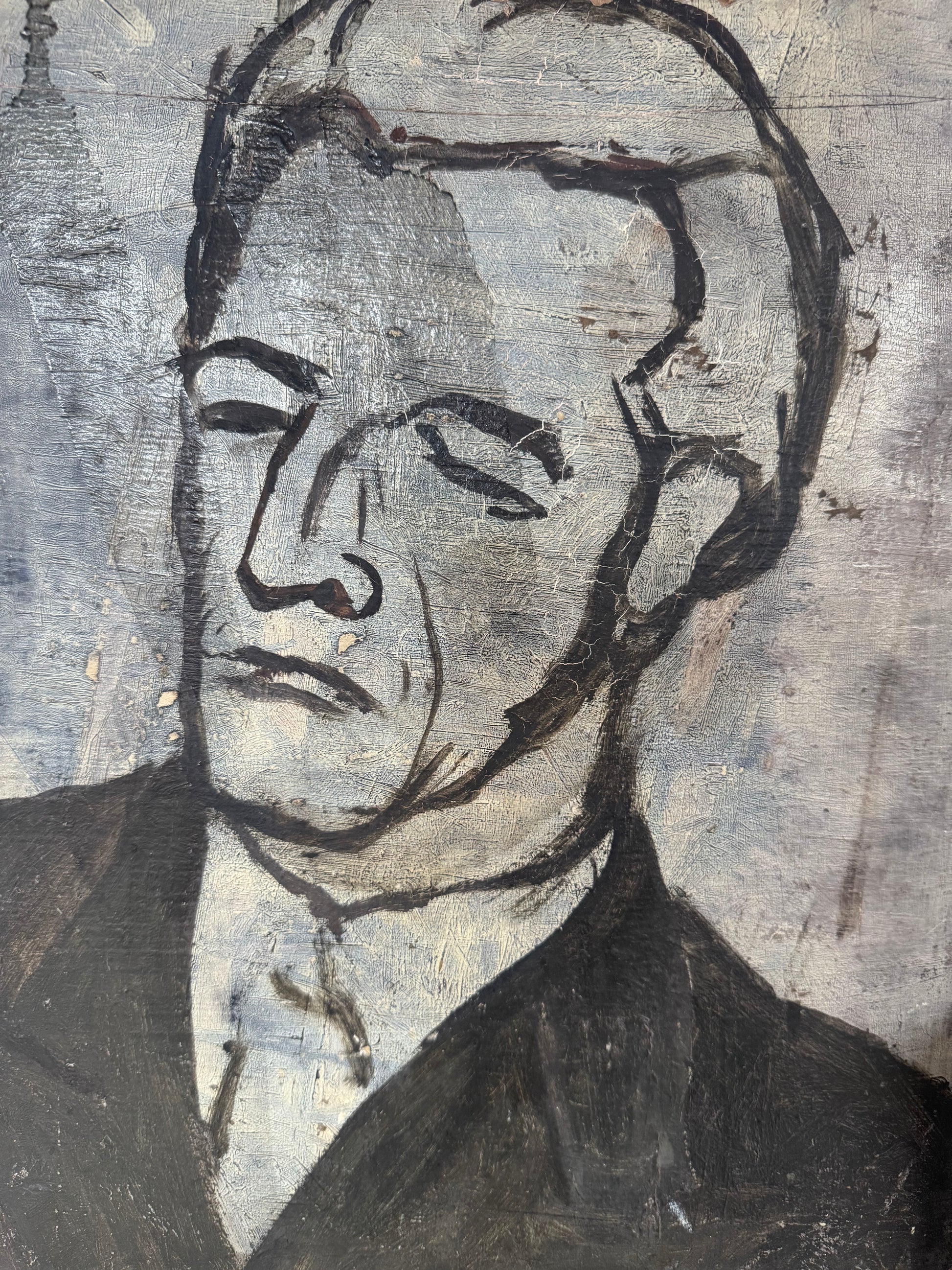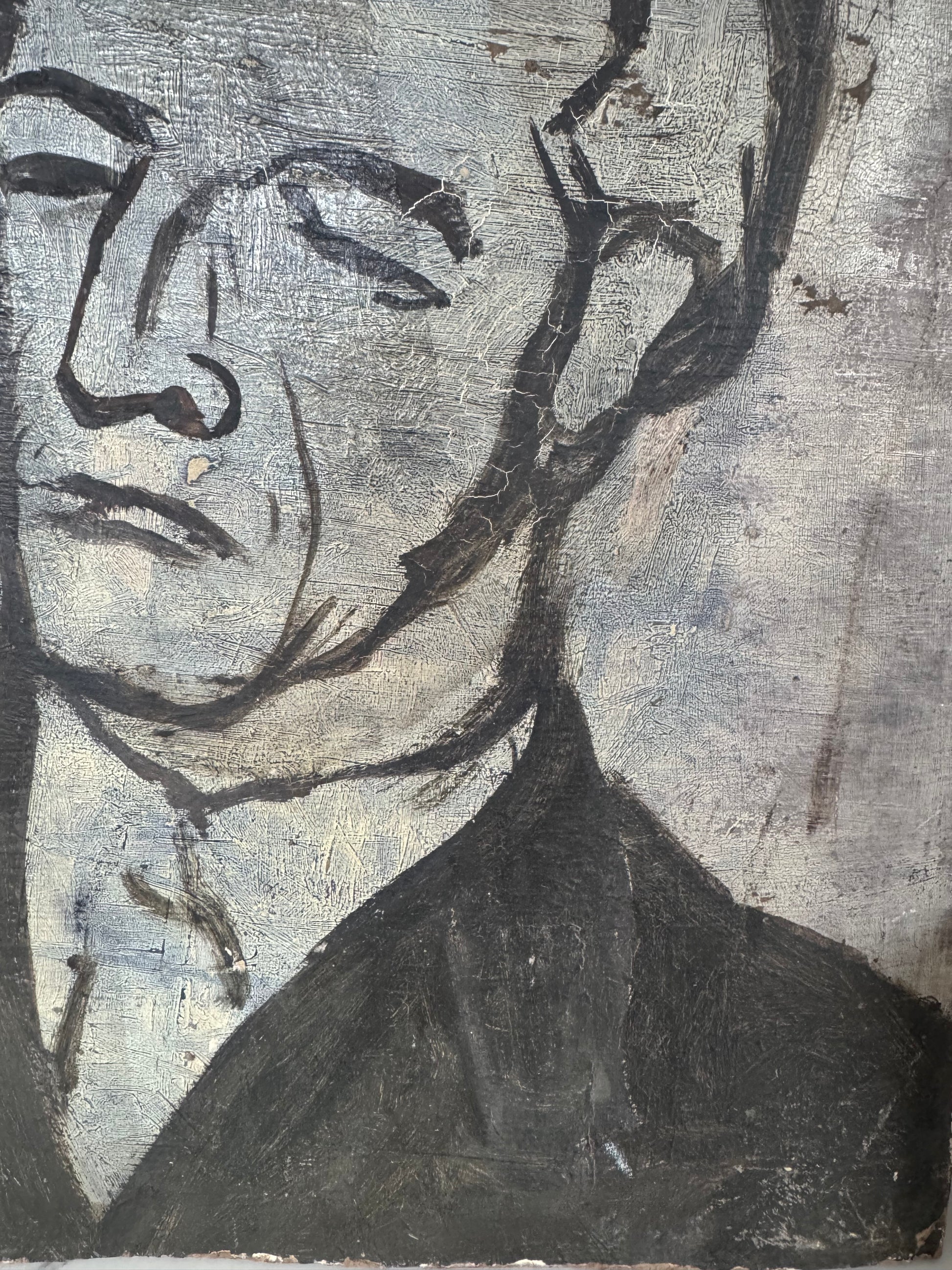 Perfect little painting for a kitchen shelf. Dark & moody colours. On the reverse is a portrait of man, I actually love the portrait but male portrait tend to be marmite!