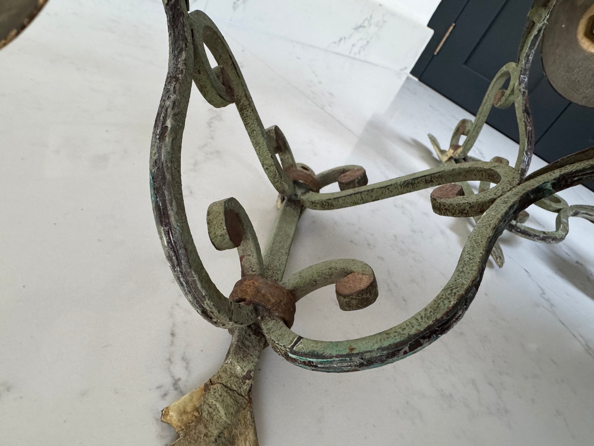 Beautiful pair of antique French wall scones in the softest green and gold.