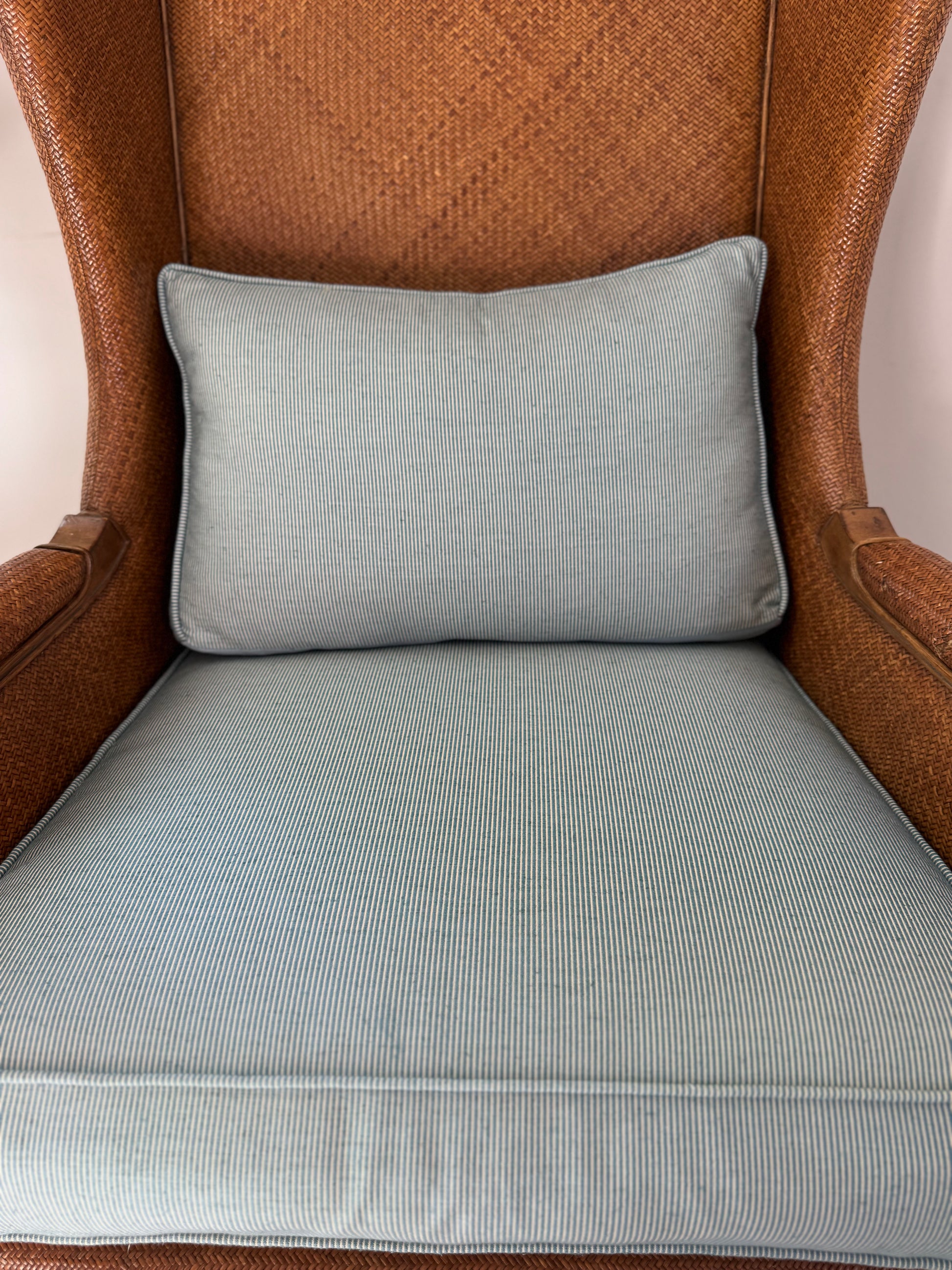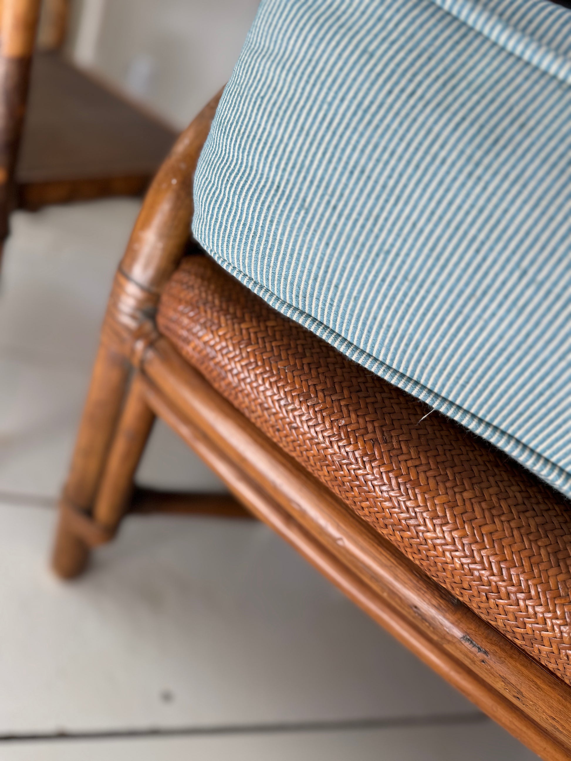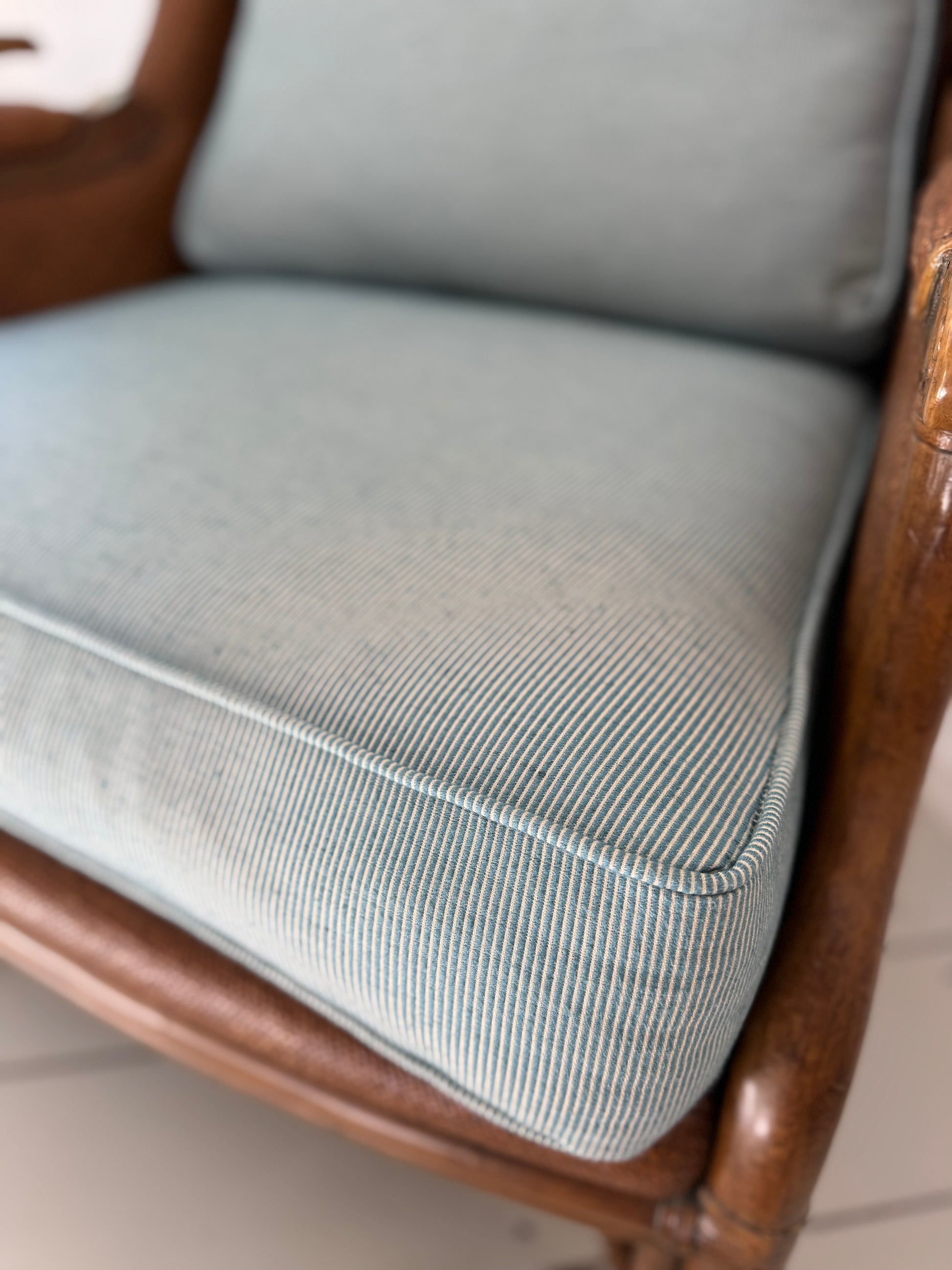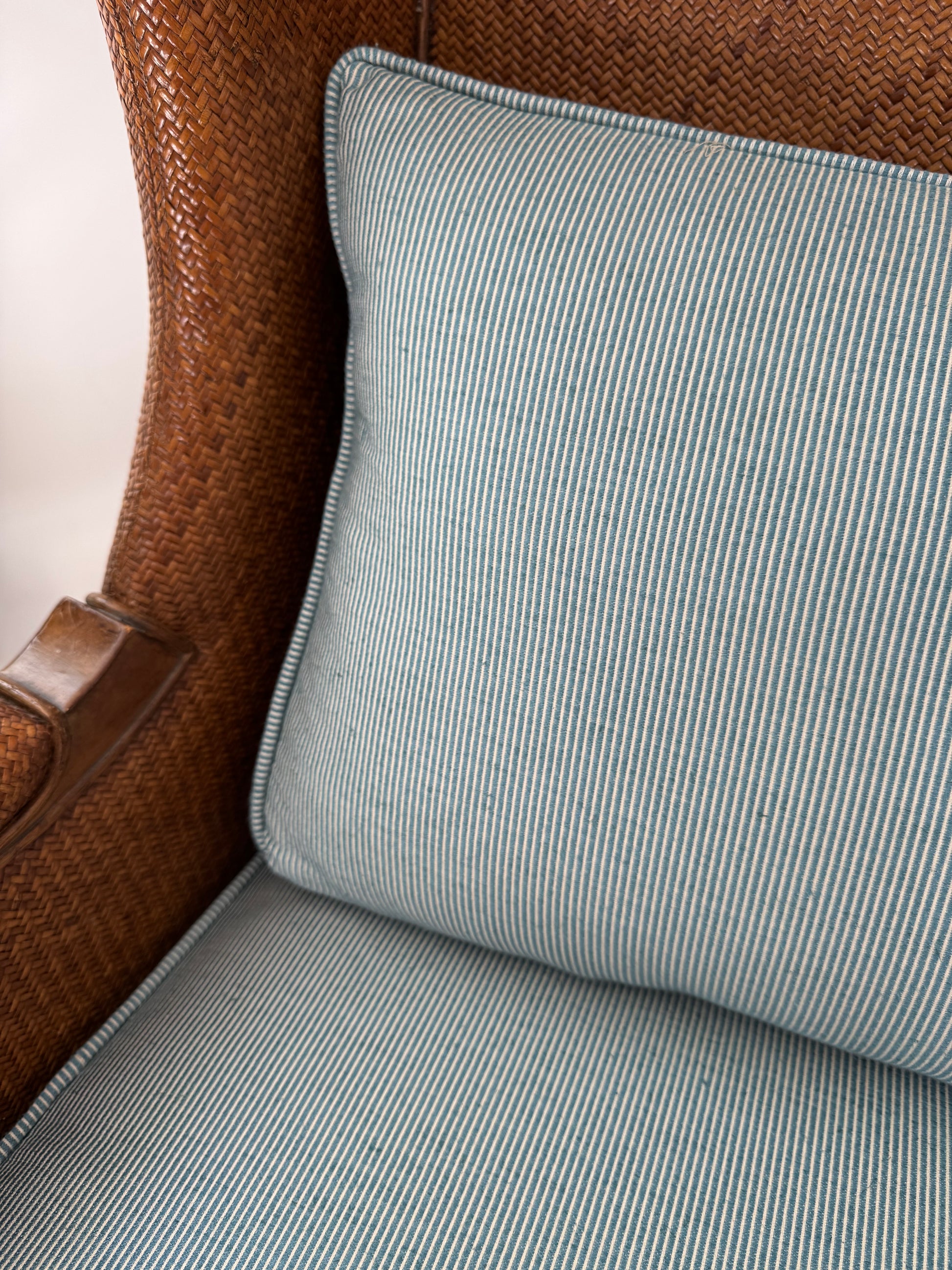 If you love the classic Ralph Lauren Home aesthetic this pair of chairs is for you. These chairs look great and are really comfortable. The cushions are covered in a high quality soft aqua cotton weave stripe.
