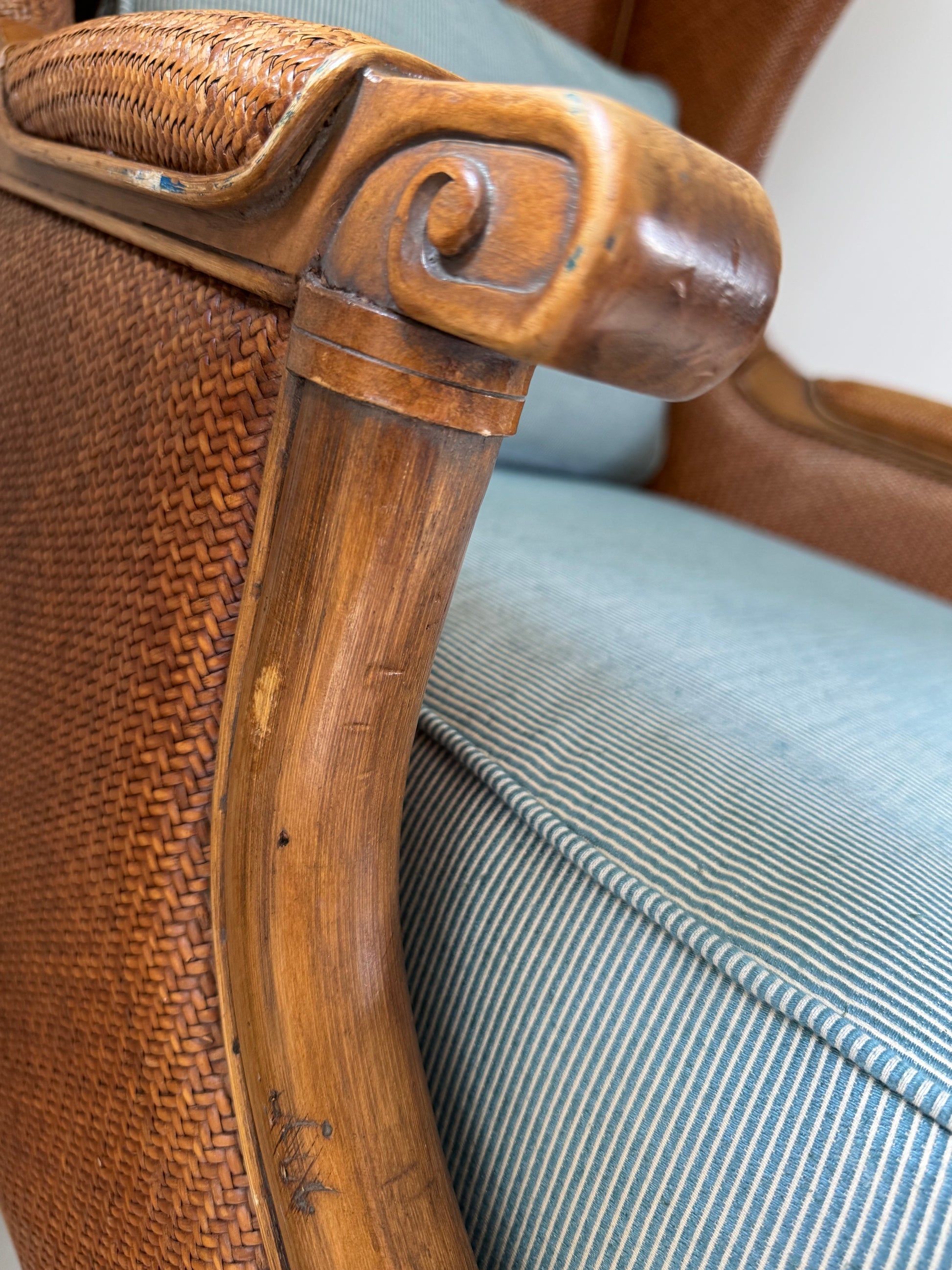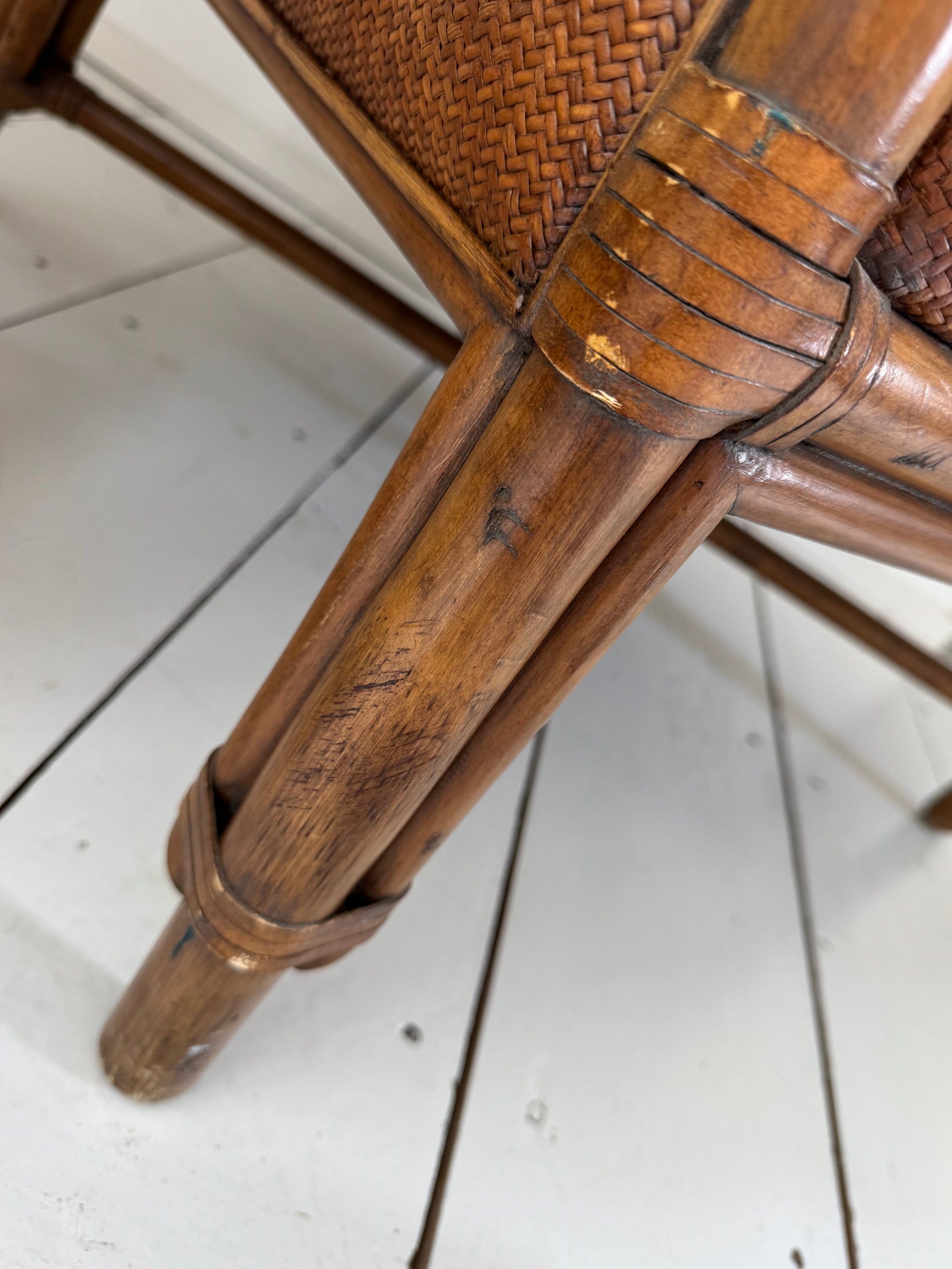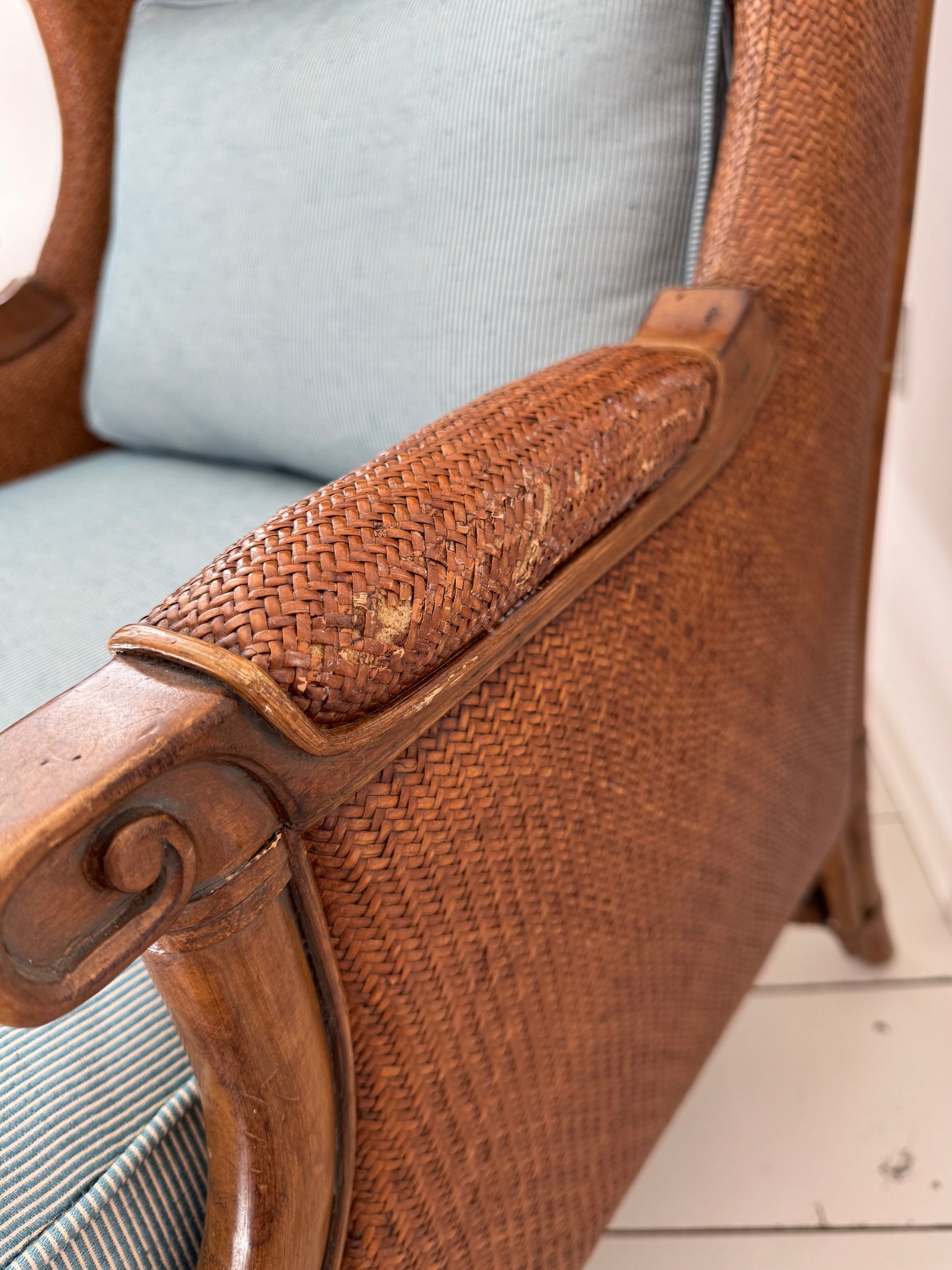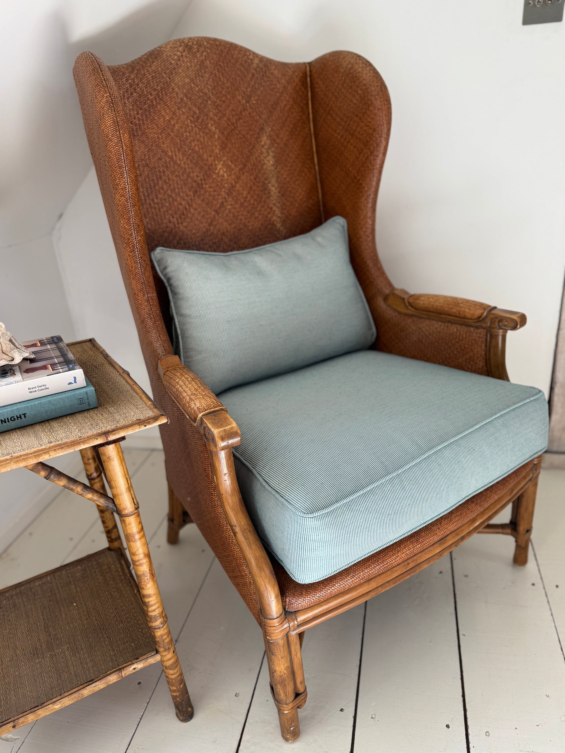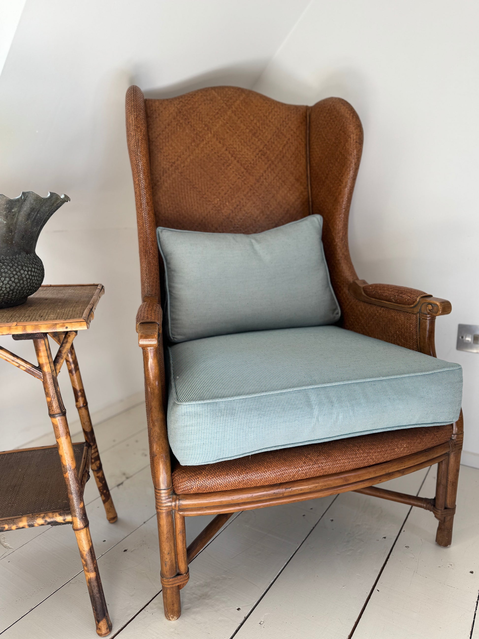 Pair Of Vintage Rattan & Faux Bamboo Wing Back Chairs