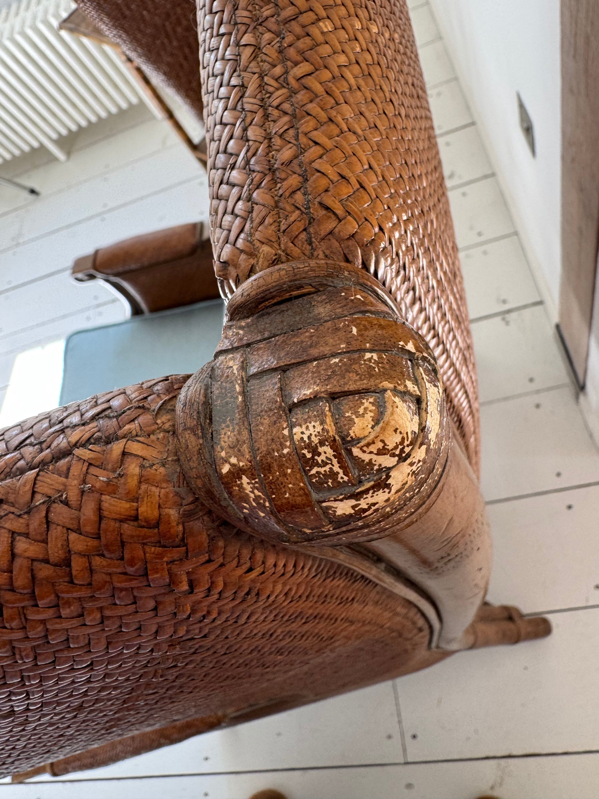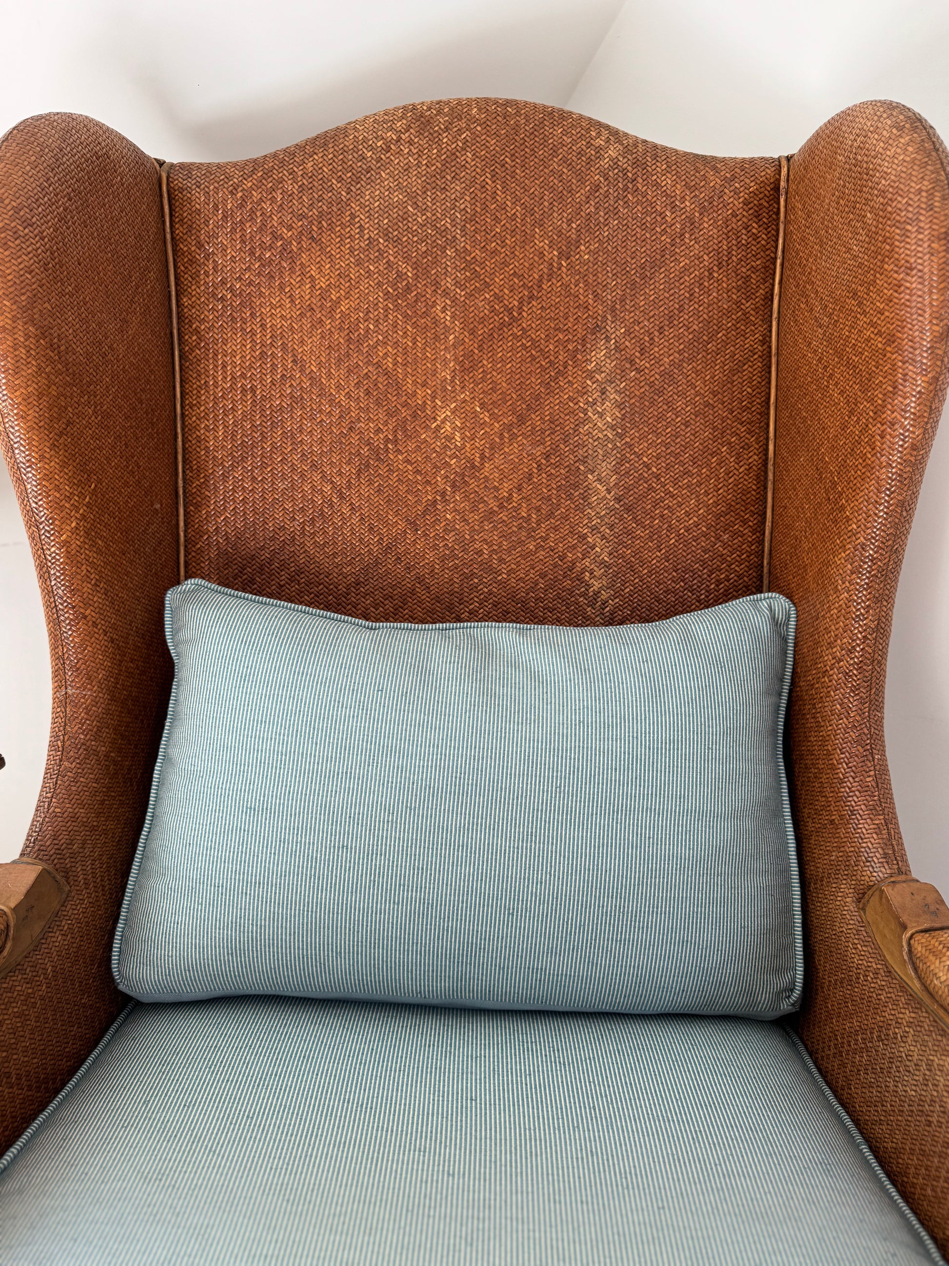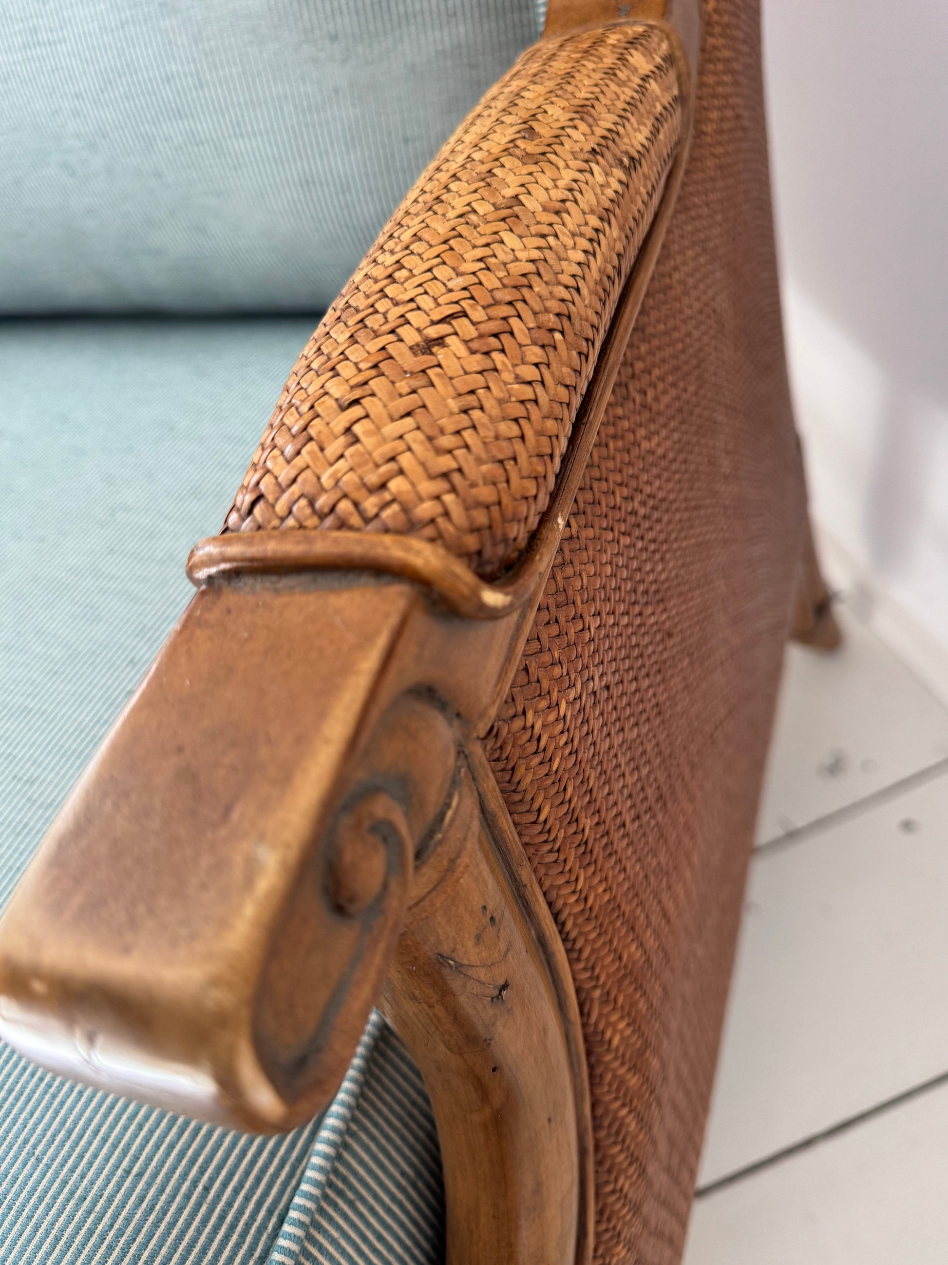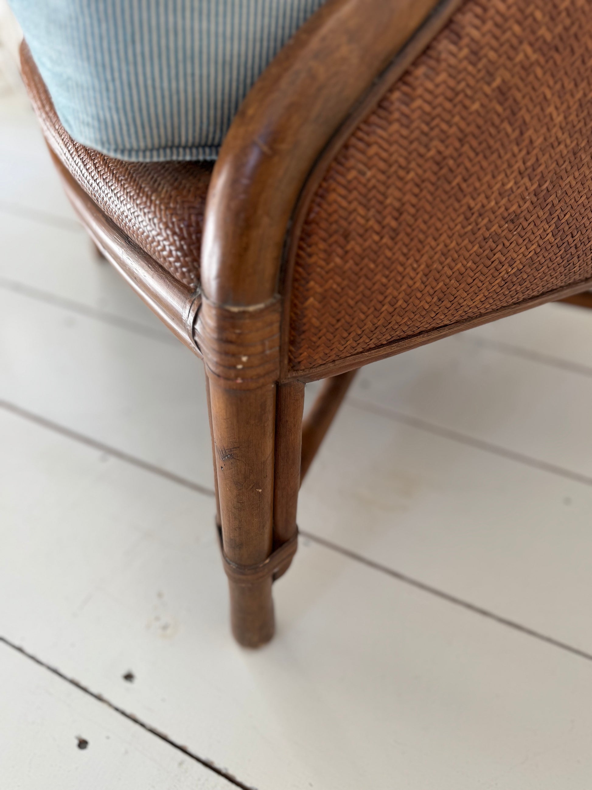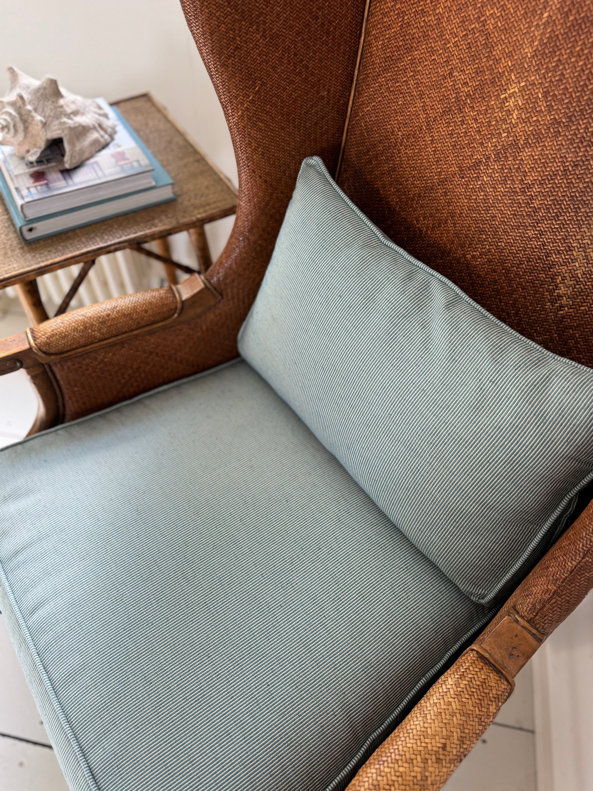 Pair Of Vintage Rattan & Faux Bamboo Wing Back Chairs