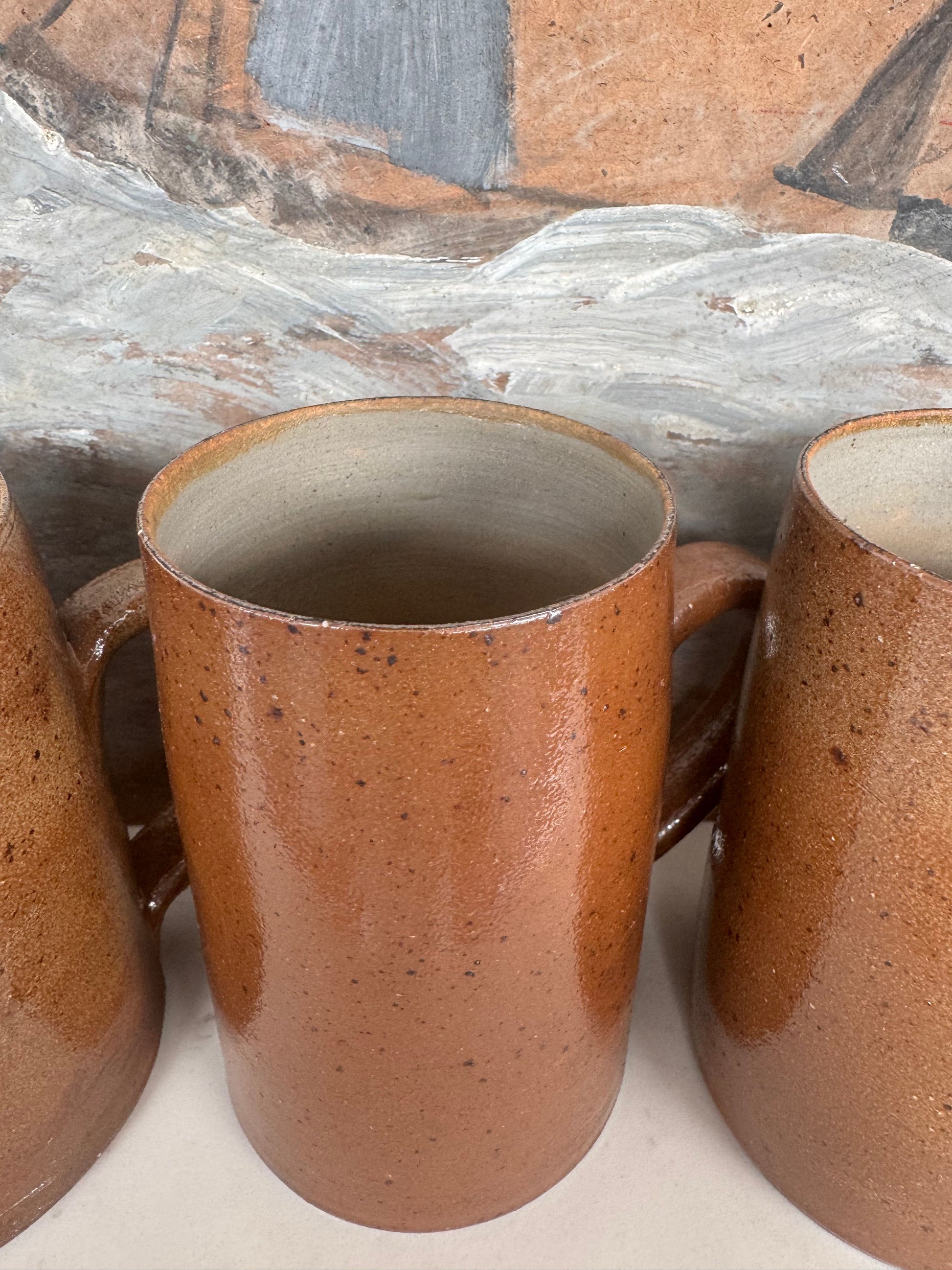 Gorgeous set of 5 French vintage rustic handmade stoneware mugs. A good size perfect for a morning latte.