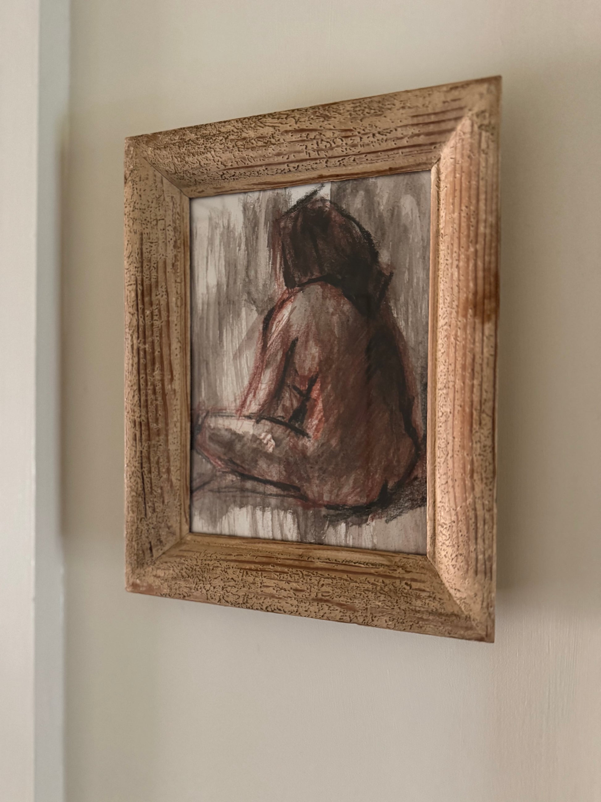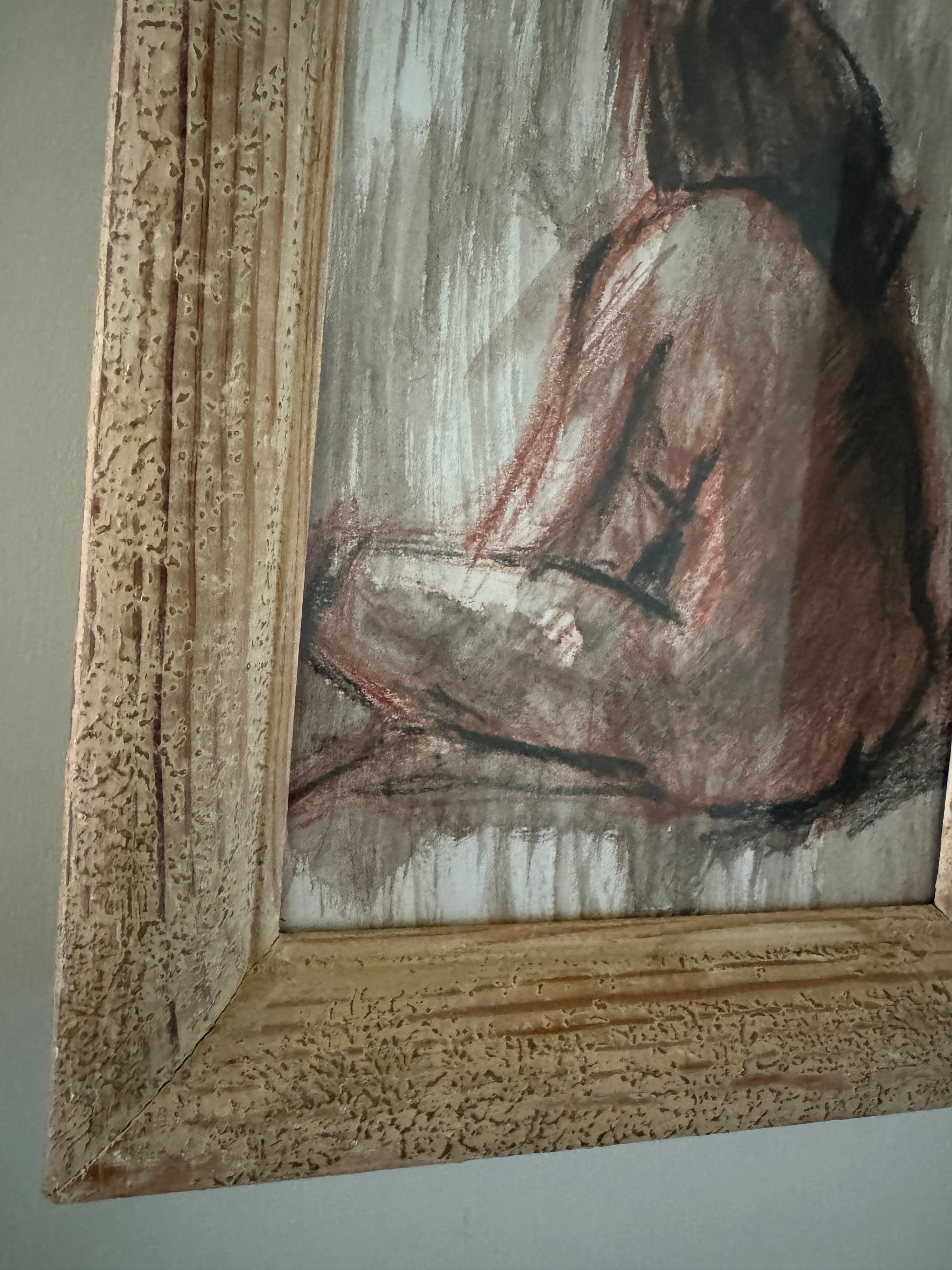 Small pencil & watercolour drawing by Stanley Joyce, framed in a rustic & textural vintage French frame.