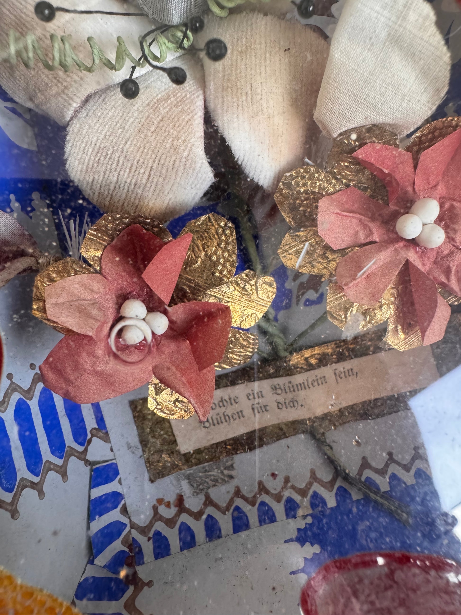 Antique German Silk Flower Diorama. A beautiful little curiosity.