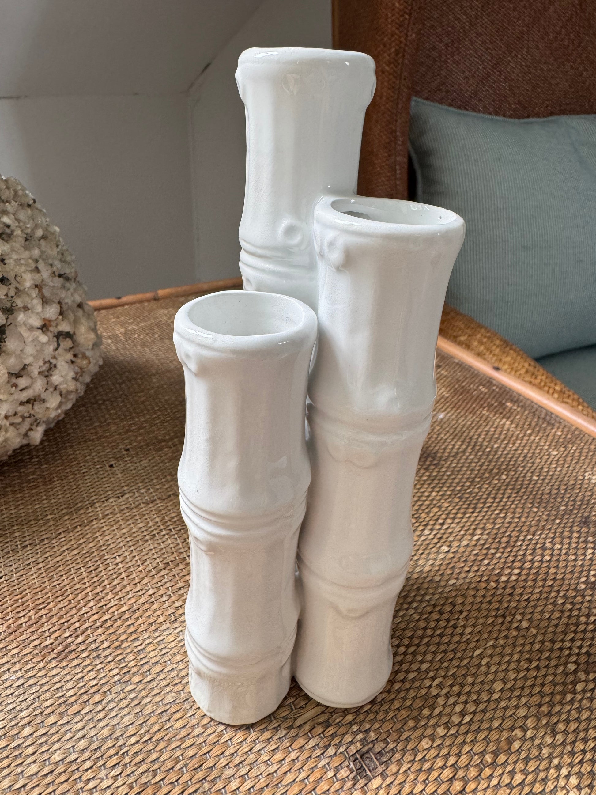 Vintage Ceramic Faux Bamboo 3 Stem Vase