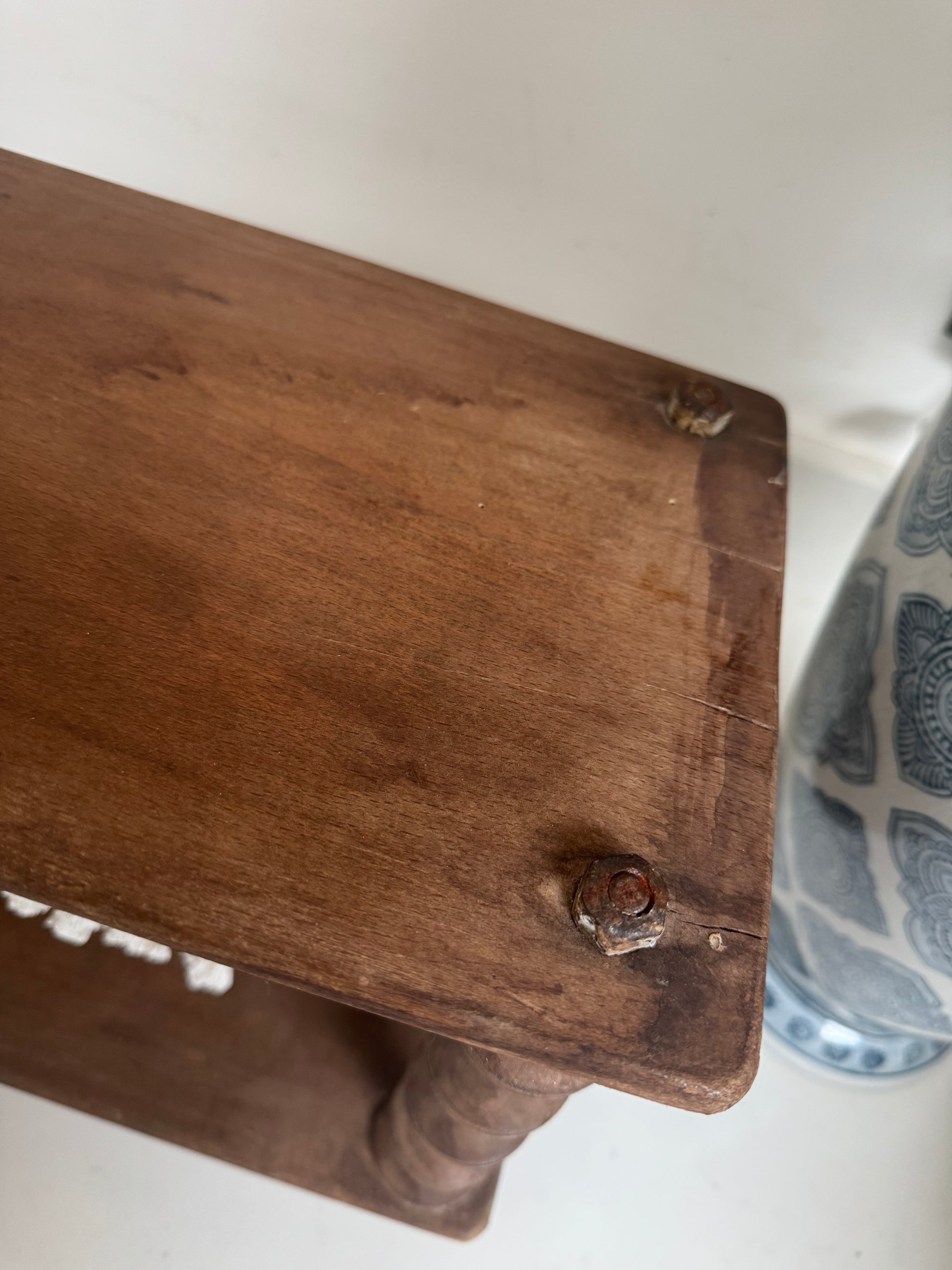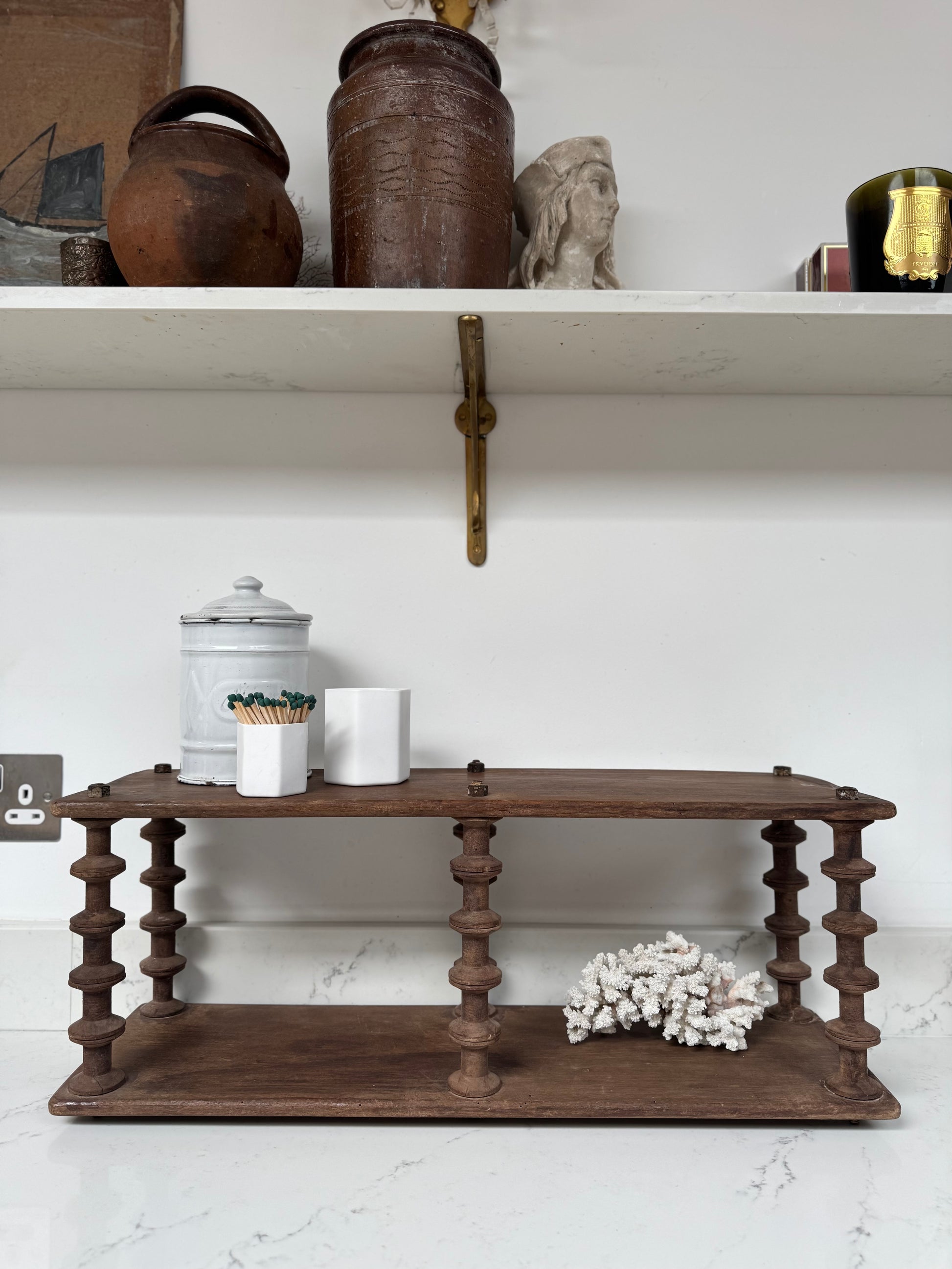 Beautiful vintage French bobbin spool folk art hanging or freestanding shelves. Look fabulous in bathrooms and bedrooms. They are knocked, chipped and a tiny bit wobbly but because of all those things they absolutely lovely.