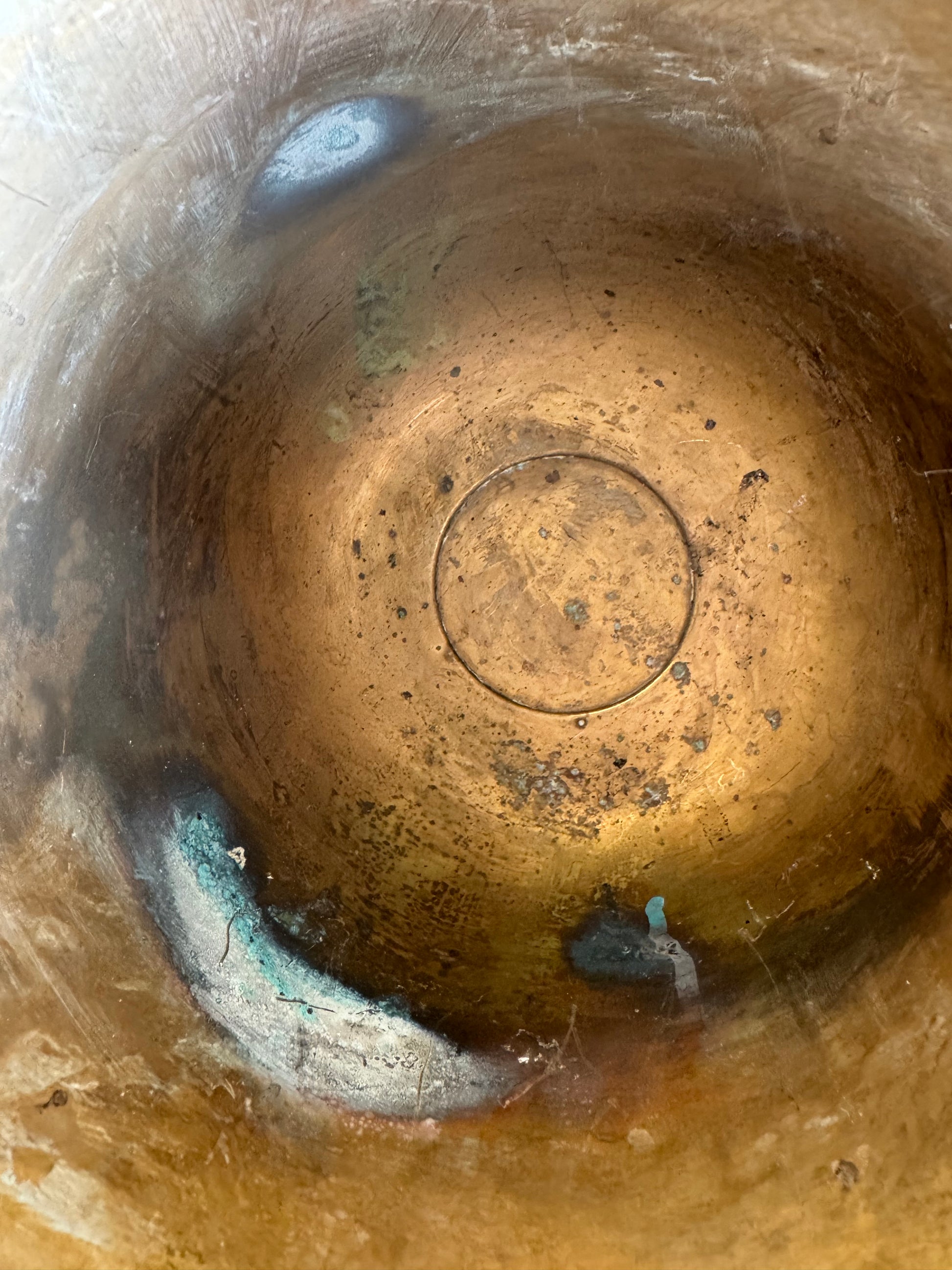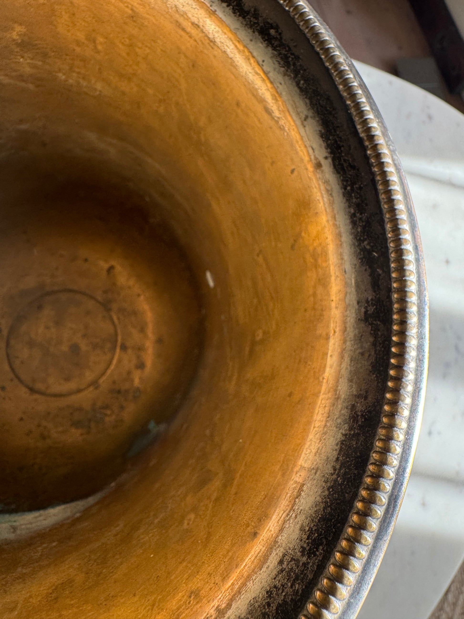 Vintage French ice bucket. This would have been covered with silver plate which has mostly worn off revealing the copper below. It has the most lovely patina and wear, a faded glamour feel.