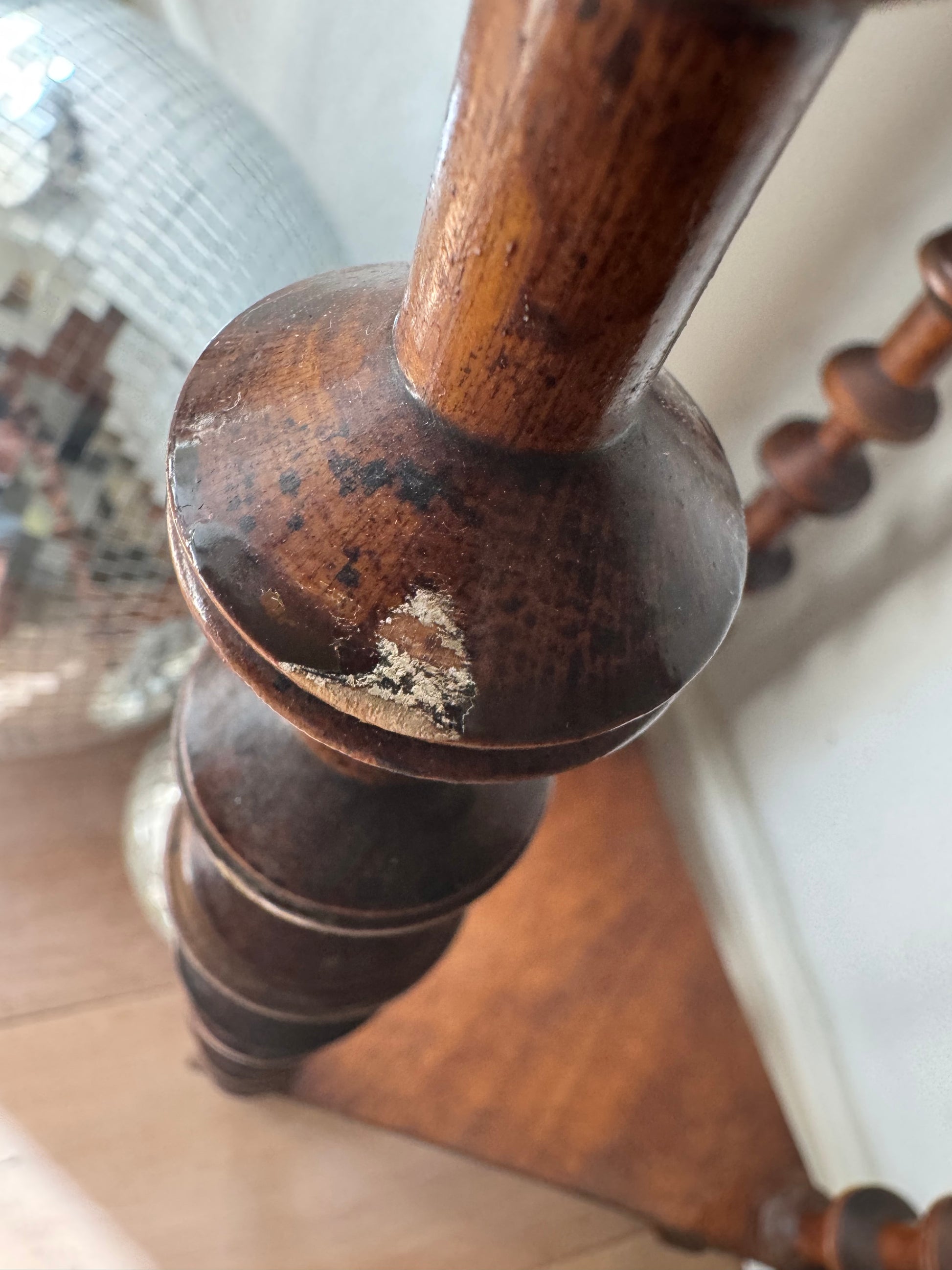 Vintage French Folk Art Bobbin Spool Side Table