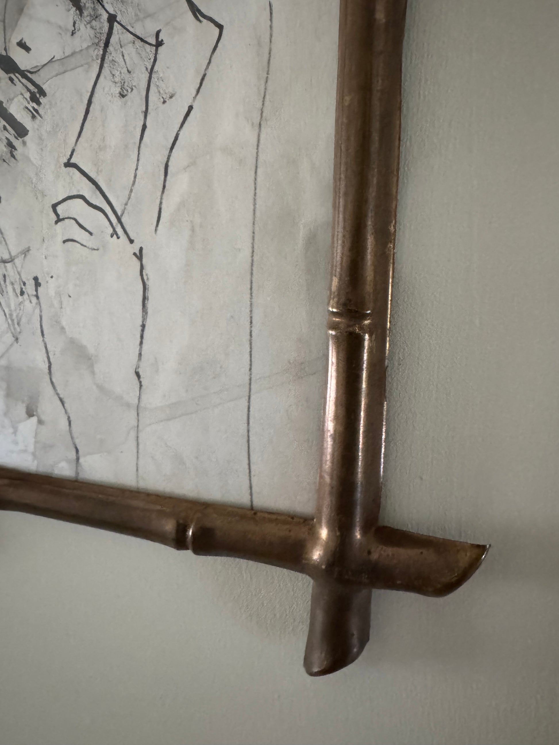 Small Vintage Ink Nude Drawing In French Faux Bamboo Brass Frame